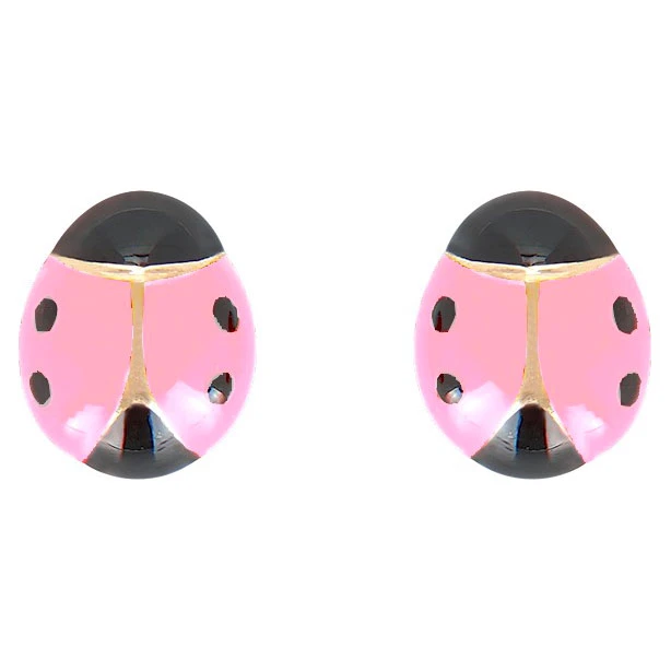 Boucles D’oreilles Coccinelles Roses – Vis – Or Jaune 9ct