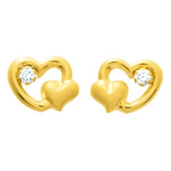 Quoi de plus romantique pour prouver votre amour à l’être aimé ? Offrez-lui une paire de boucles d’oreilles en forme de coeur. Intemporelles et réalisées en or jaune 9 carats, elles sont ornées d’oxydes de zirconium accentuant brillance et éclat. Ces boucles d’oreilles constituent un grand classique qui raviront les plus petits comme les plus grands. Diamètre 8mm. Les boucles d’oreilles, accompagnées de leur certificat d’authenticité, sont présentées dans un bel écrin avec un joli sac.