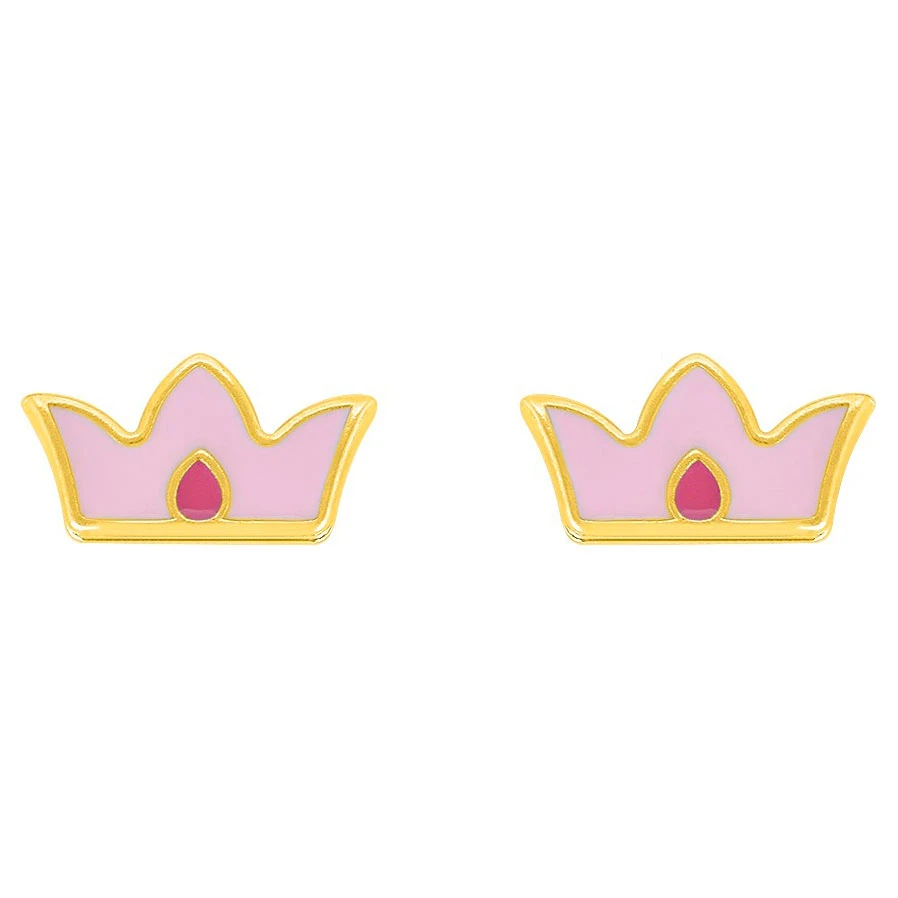 Voici de vraies couronnes pour une jolie petite princesse! Seulement ces belles couronnes colorées ne se portent pas sur la tête mais accrochées aux oreilles car il s’agit bien évidemment de boucles d’oreilles en or jaune 18 carats et à vis, spécialement adaptées aux enfants. Diamètre 7 mm. Ce sont des boucles d’oreilles enfant avec fermoirs à vis, composés d’une tige et d’un pas de vis, ce qui est particulièrement recommandé pour les enfants. Les boucles d’oreilles, accompagnées de leur certificat d’authenticité, sont présentées dans un bel écrin avec un joli sac.