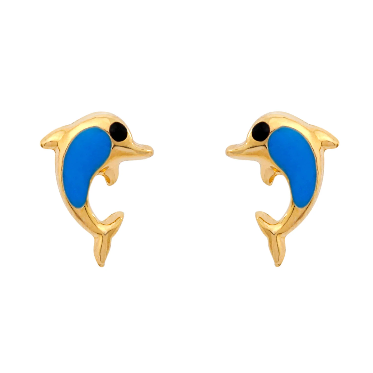 Boucles D’oreilles Dauphins – Vis – Or Jaune 18ct