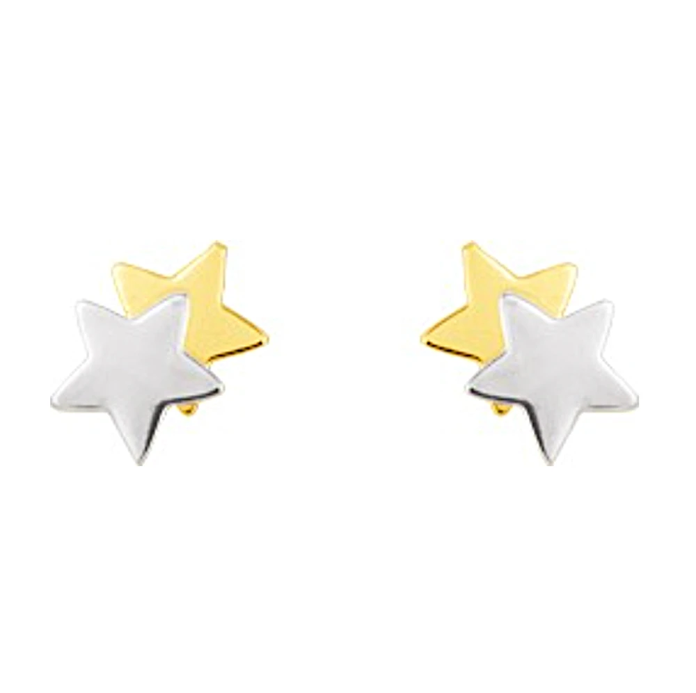 Boucles D’oreilles Etoiles – Puces – Or Jaune Et Or Blanc 9ct