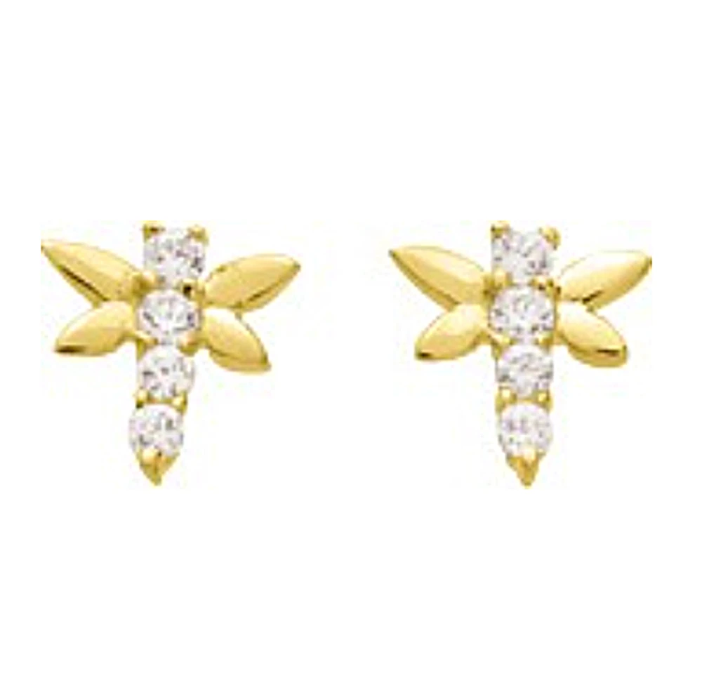 Boucles D’oreilles Libellule – Puces – Or Jaune 18ct