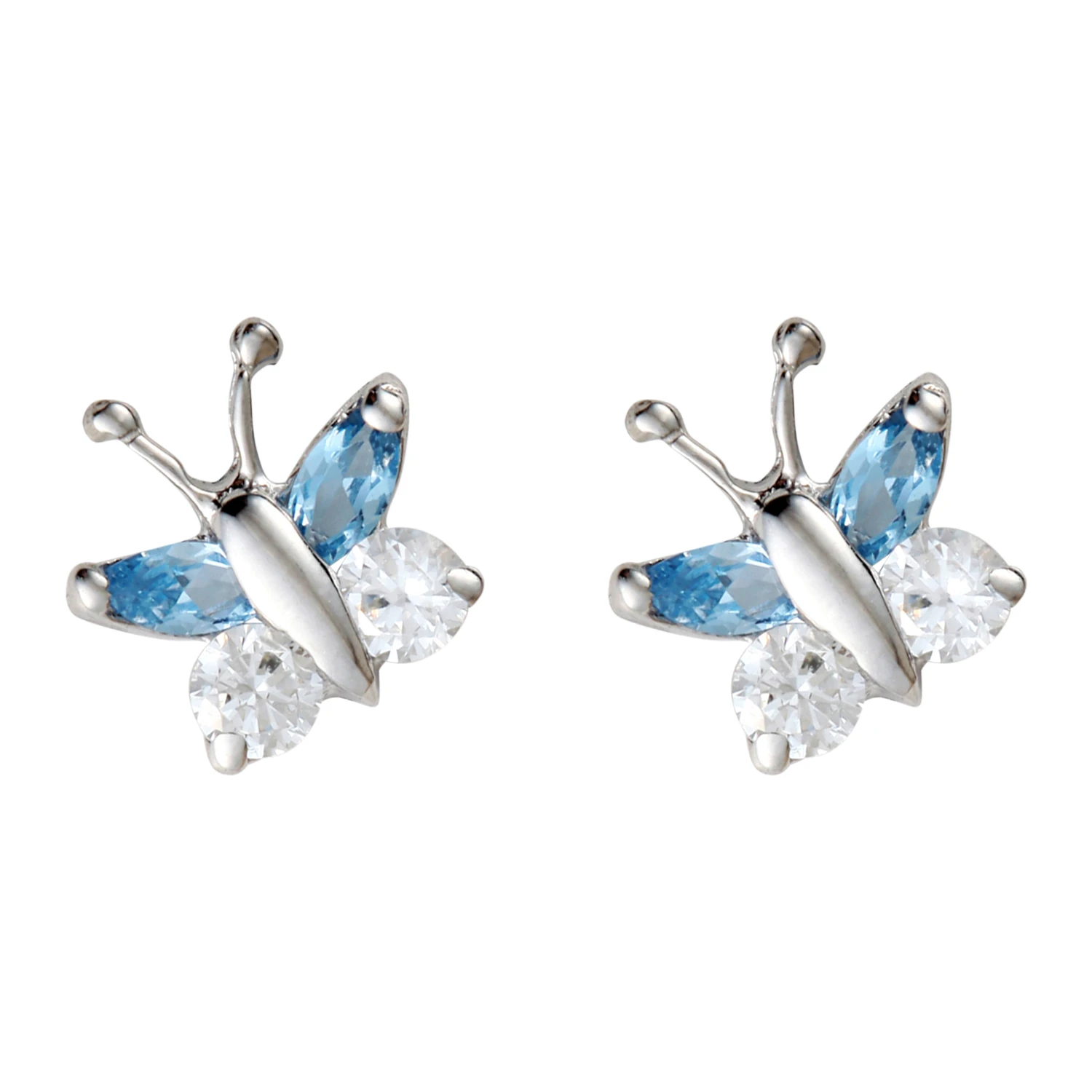 Découvrez cette jolie paire de boucles d’oreilles papillons en or blanc 9ct. On craque pour ce bijou aux airs de joaillerie avec ces scintillants oxydes de zirconium bleus et blancs sertis en guise d’ailes. Le papillon, symbole d’épanouissement et de joie fera à coup sûr le bonheur de la personne qui le recevra. Un cadeau idéal pour l’anniversaire ou le baptême d’une petite fille. Diamètre 5mm. Les boucles d’oreilles, accompagnées de leur certificat d’authenticité, sont présentées dans un bel écrin avec un joli sac.