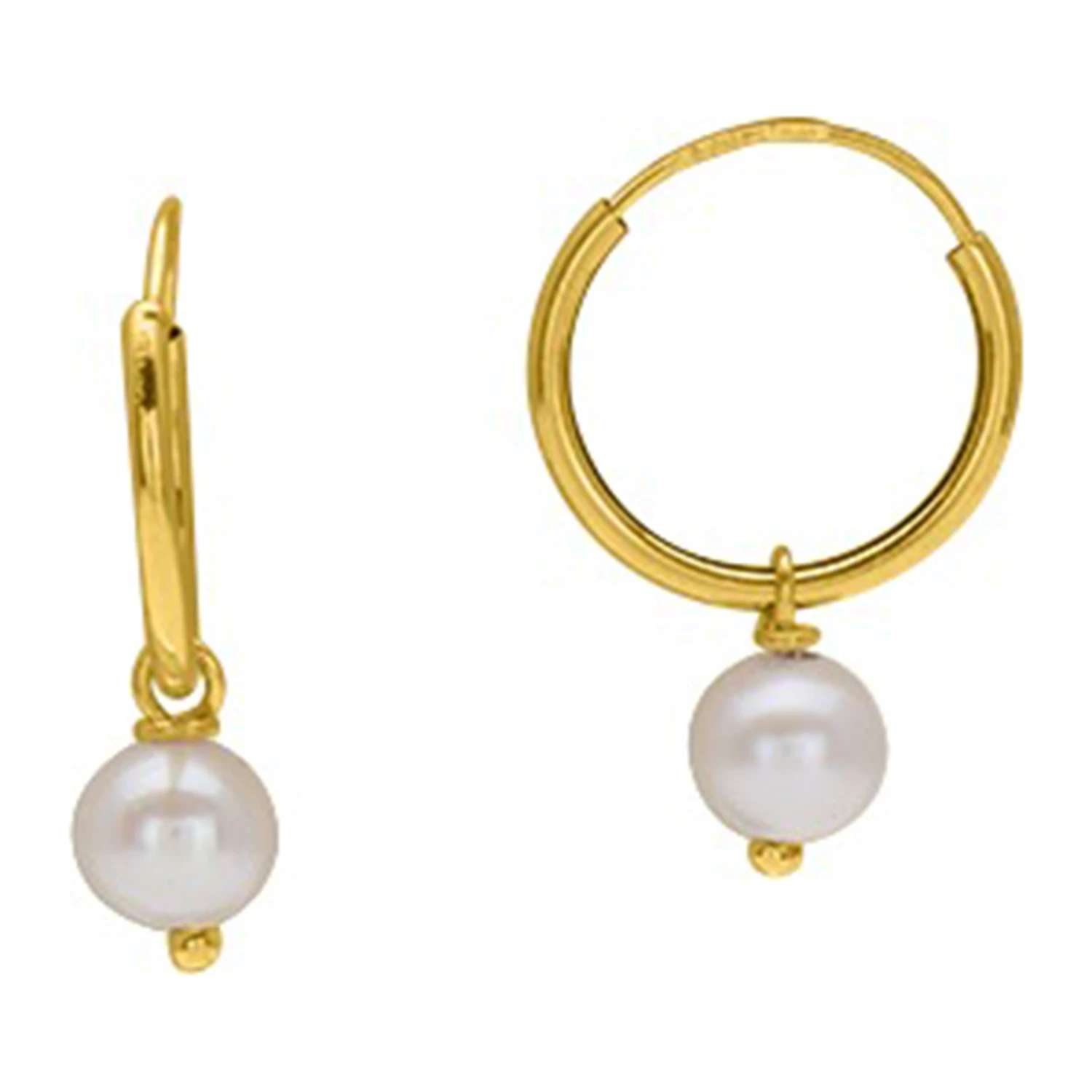Boucles D’oreilles Perles Blanche – Créoles – Or Jaune 9ct