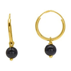 Boucles D’oreilles Perles Noire – Créoles – Or Jaune 9ct