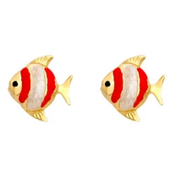 Avec ces jolies boucles d’oreilles enfants comment ne pas nager dans le bonheur ? Ces deux charmants petits poissons en or jaune, aux écailles laquées blanc et rouge forment un motif original qui séduira toutes les petites filles et pas seulement celles nées sous un signe d’eau ! Diamètre 8mm. Ce sont des boucles d’oreilles enfant avec fermoirs à vis, composés d’une tige et d’un pas de vis, ce qui est particulièrement recommandé pour les enfants. Les boucles d’oreilles, accompagnées de leur certificat d’authenticité, sont présentées dans un bel écrin avec un joli sac.