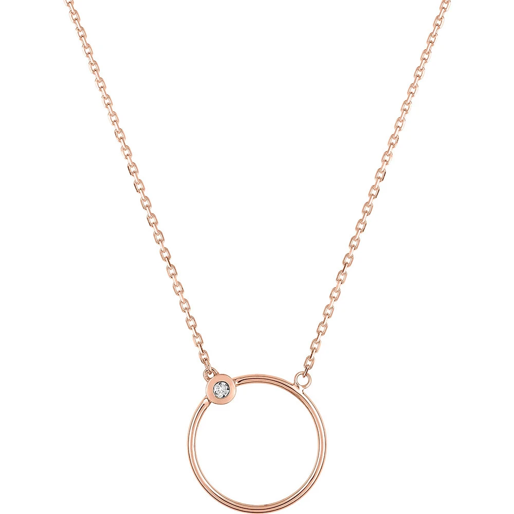 Collier Pendentif Design Cercle – Diamant & Or Rose 9ct