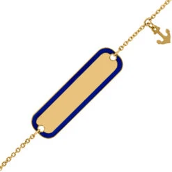 Découvrez cette originale gourmette bébé encre en or jaune. Le contour laqué bleu de sa plaque associée à une petite breloque encre font toute l’unicité de ce bijou à offrir pour une naissance ou un baptême. Dimensions de la plaque: 2,3cm x 0,6cm. La gourmette mesure 14cm et possède un anneau intermédiaire à 12,5cm. Elle est présentée dans un ravissant petit écrin blanc avec son certificat d’authenticité. Vous pouvez faire graver le prénom de l’enfant au recto et la date de votre choix au verso.