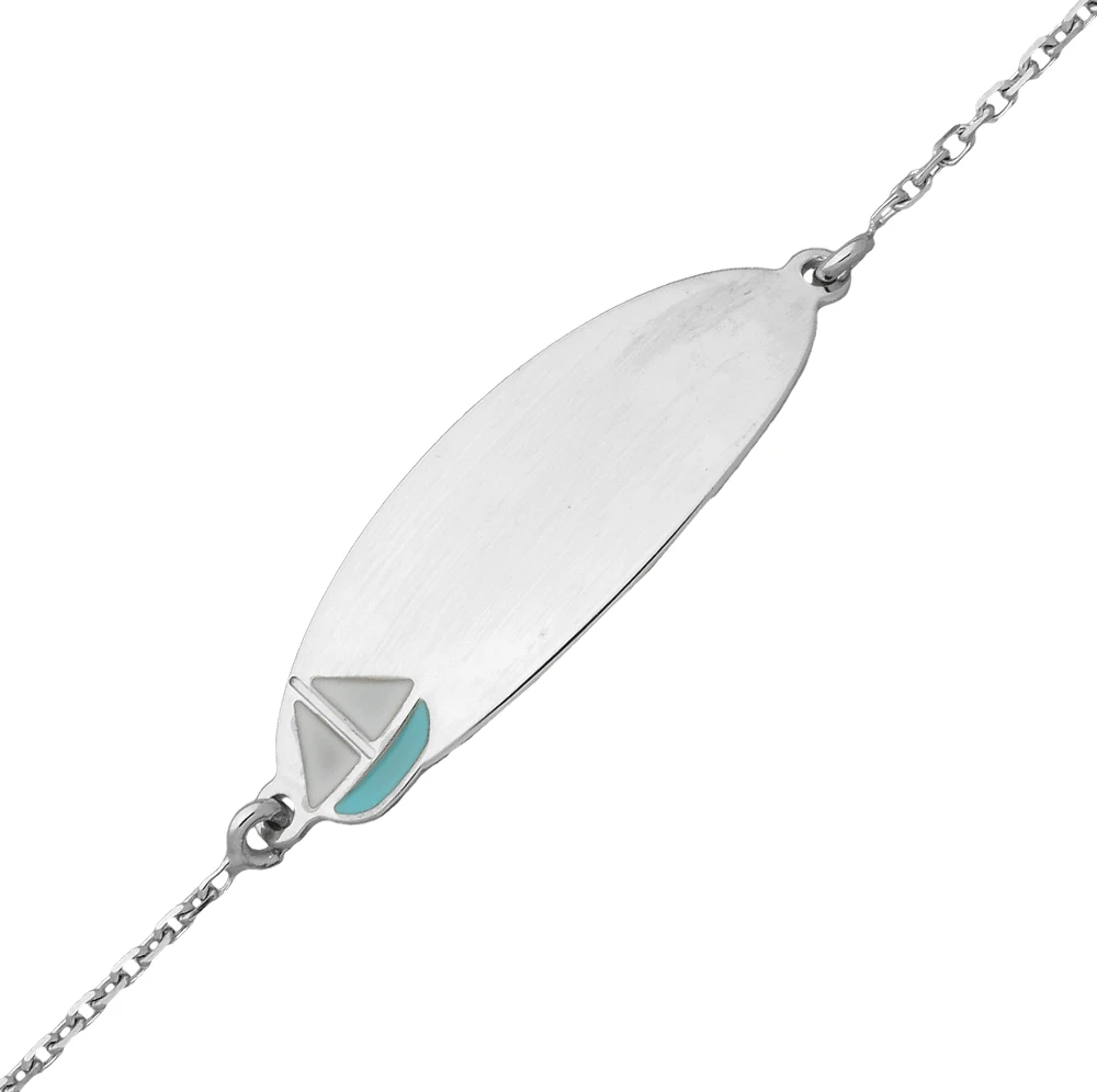 Petit moussaillon, cette gourmette bébé est faite pour toi ! Comment résister à l’appel du large avec cette belle gourmette bébé en or blanc. Sur sa plaque d’identité s’est amarré un joli petit bateau à voile. Il n’attend que la gravure d’un prénom pour partir au gré de folles aventures. La finesse du bracelet en maille forçat et l’originalité de cette gourmette très marine en font un cadeau idéal à offrir pour un baptême. Dimension de la plaque : 2,2 x 0,6mm La gourmette mesure 14cm et possède un anneau intermédiaire à 12,5cm. Elle est présentée dans un ravissant petit écrin blanc avec son certificat d’authenticité. Vous pouvez faire graver le prénom de l’enfant au recto et la date de votre choix au verso.