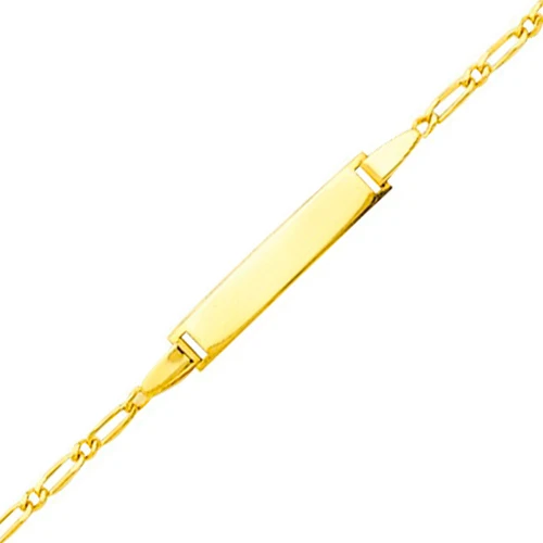 Cette élégante gourmette bébé en maille cheval alternée 1/1 enchaîne un maillon court et un maillon allongé. Les maillons aérés entourent une fine plaque destinée à la gravure d’un prénom. Au poignet d’un enfant, ce bijou en or jaune aura beaucoup d’allure et, de part la forme des maillons, pourra être ajusté au fil des années. Dimensions de la plaque: 2,4cm x 0,3cm La gourmette mesure 14cm et possède un anneau intermédiaire à 12,5cm. Elle est présentée dans un ravissant petit écrin blanc avec son certificat d’authenticité. Vous pouvez faire graver le prénom de l’enfant au recto et la date de votre choix au verso.