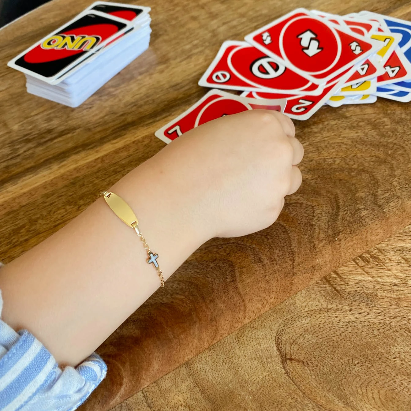 Gourmette Bébé Croix – Or Jaune 18ct & Nacre