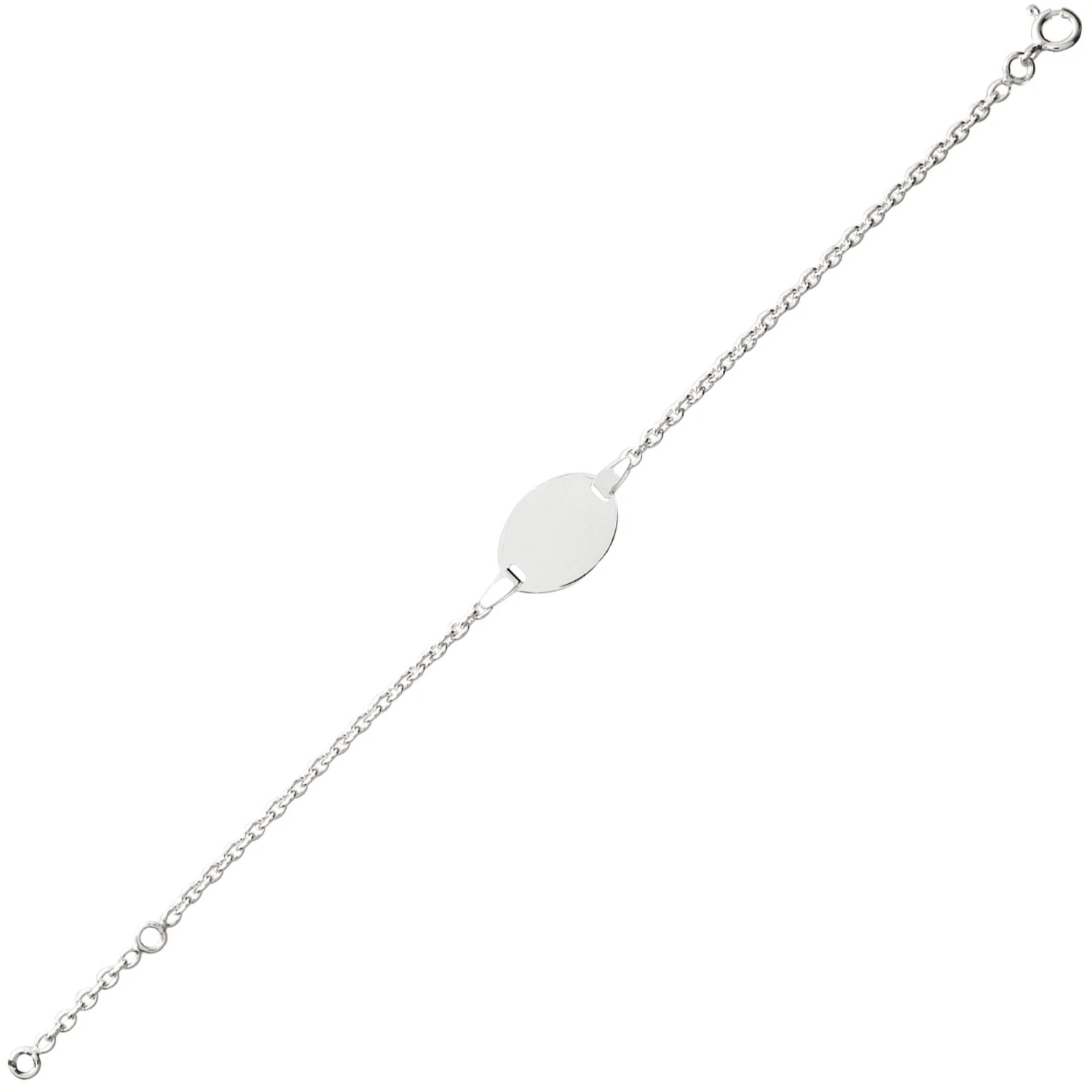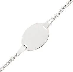Toute la fantaisie de cette gourmette bébé en maille forçat tient en sa plaque centrale ovale dont l’éclat rappelle celui d’un miroir. Elle mettra d’autant mieux en valeur la gravure d’un prénom et la quintessence de ce bijou à offrir pour une naissance ou un baptême . Dimensions de la plaque: 1,5cm x 1,1cm. La gourmette mesure 15cm et possède un anneau intermédiaire à 13cm. Elle est présentée dans un ravissant petit écrin blanc avec son certificat d’authenticité. Vous pouvez faire graver le prénom de l’enfant au recto et la date de votre choix au verso.
