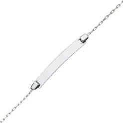 On aime plus que tout l’élégance raffinée de l’or blanc de cette gourmette bébé en maille forçat. Ce bijou plutôt féminin est discret mais non dénué d’éclat grâce à son aspect diamanté. Une fine gravure prénom sur sa plaque donnera la touche finale à ce beau bracelet à offrir à l’occasion d’une naissance ou d’un baptême. Dimensions de la plaque: 2,2cm x 0,3cm. La gourmette mesure 14cm et possède un anneau intermédiaire à 12,5cm. Elle est présentée dans un ravissant petit écrin blanc avec son certificat d’authenticité. Vous pouvez faire graver le prénom de l’enfant au recto et la date de votre choix au verso.