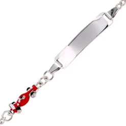 Avec cette jolie gourmette en argent massif, pas question de manquer le départ de la course ! Orné d’une petite voiture de Formule 1 au rouge rutilant rappelant le beau rouge Ferrari, ce bracelet enfant a fière allure. Complété de la gravure d’un prénom sur la plaque d’identité insérée il constituera un cadeau élégant et original à offrir en toutes circonstances, à, peut-être, un futur pilote. Dimensions de la plaque: 2,2cm x 0,5cm. La gourmette mesure 14cm et possède un anneau intermédiaire à 12,5cm. Elle est présentée dans un ravissant petit écrin blanc avec son certificat d’authenticité. Vous pouvez faire graver le prénom de l’enfant au recto et la date de votre choix au verso.