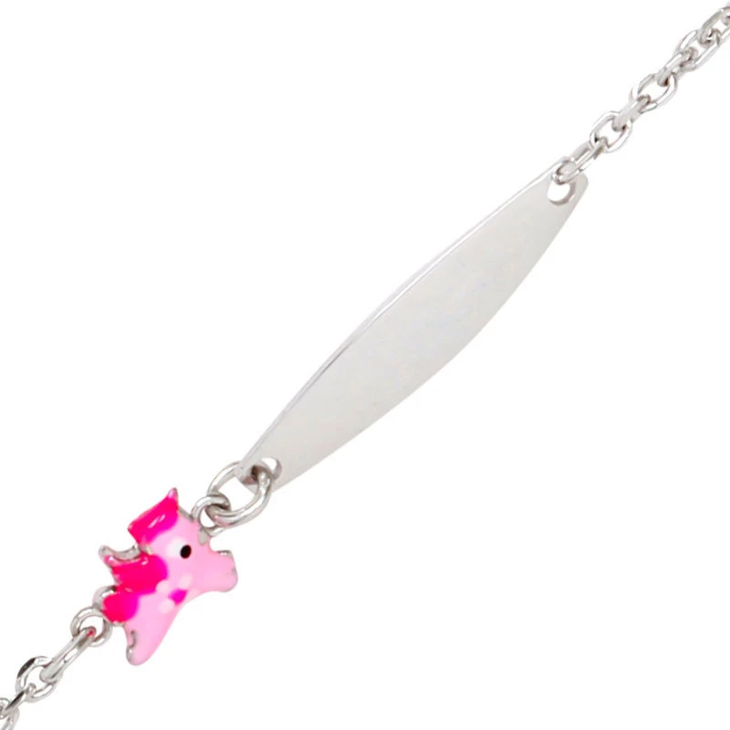 La « Licorne-mania » a encore de beaux jours devant elle ! Preuve en est avec cette jolie gourmette bébé en argent massif qui a incrusté cet animal mythologique à l’intérieur de son bracelet. Comment résister à l’appel de cette adorable créature toute de rose vêtue, qui, dit-on, aurait bel et bien existé au temps de la Préhistoire…. La gourmette mesure 14cm et possède un anneau intermédiaire à 12,5cm. Elle est présentée dans un ravissant petit écrin blanc avec son certificat d’authenticité. Vous pouvez faire graver le prénom de l’enfant au recto et la date de votre choix au verso.