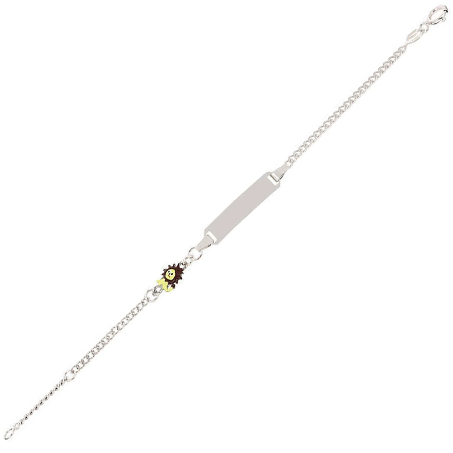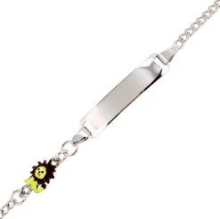 Le roi de la savane a trouvé sa place ! Sur les maillons de ce bracelet il rugit de plaisir car il sait qu’un enfant saura le mettre en valeur autour de son poignet. Cet adorable lion à la belle crinière noire constitue la touche chic et charme de cette gourmette bébé originale à personnaliser d’un prénom sur la plaque prévue à cet effet. Dimensions de la plaque: 2,2cm x 0,5cm. La gourmette mesure 14cm et possède un anneau intermédiaire à 12,5cm. Elle est présentée dans un ravissant petit écrin blanc avec son certificat d’authenticité. Vous pouvez faire graver le prénom de l’enfant au recto et la date de votre choix au verso.
