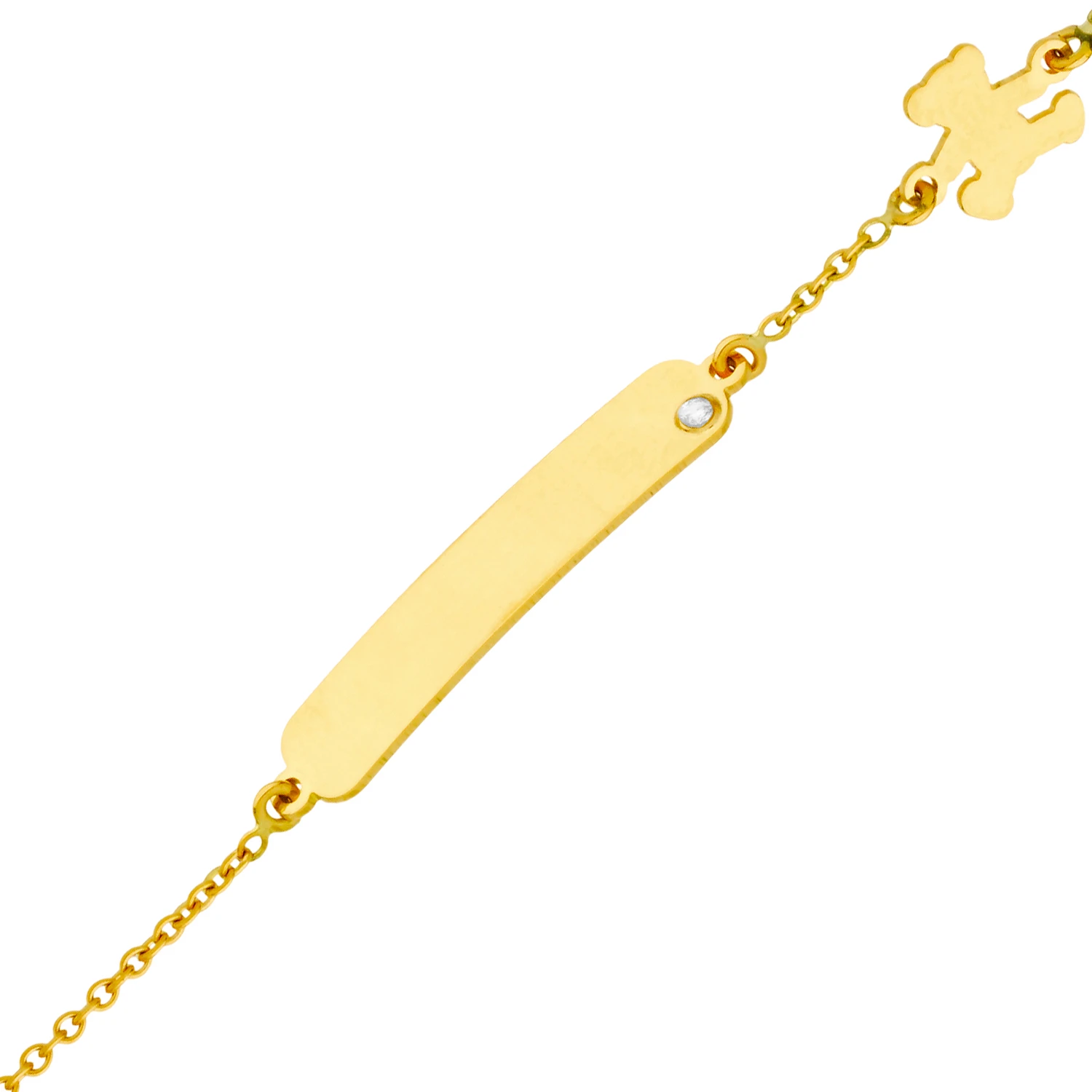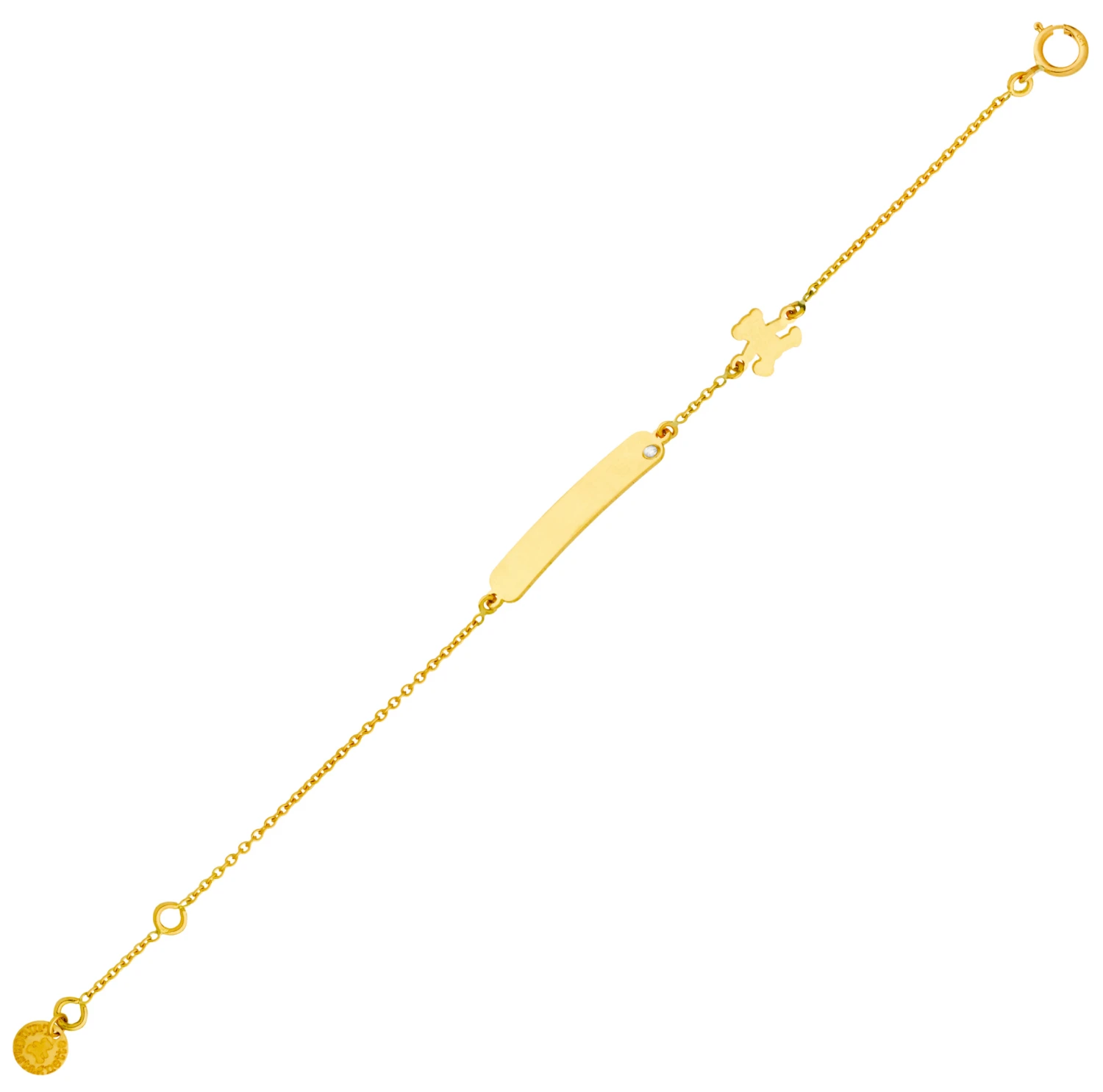 Un petit ourson s’est égaré sur le bracelet de cette gourmette bébé, un petit diamant s’est posé sur le coin de la plaque à graver et une belle gourmette de baptême est née de toutes ces fantaisies ainsi réunies. Un bien joli bijou qui fera la joie d’une petite fille. Dimensions de la plaque: 2,3cm x 0,4cm. La gourmette mesure 14cm et possède un anneau intermédiaire à 12,5cm. Elle est présentée dans un ravissant petit écrin blanc avec son certificat d’authenticité. Vous pouvez faire graver le prénom de l’enfant au recto et la date de votre choix au verso.