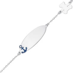 Un petit ourson s’est égaré sur le bracelet de cette gourmette bébé, une ancre s’est posée sur le coin de la plaque à graver et une belle gourmette de baptême est née de toutes ces fantaisies ainsi réunies. Un bien joli bijou qui fera la joie d’une petit garçon. Dimensions de la plaque: 2cm x 0,7cm. La gourmette mesure 14cm et possède un anneau intermédiaire à 12,5cm. Elle est présentée dans un ravissant petit écrin blanc avec son certificat d’authenticité. Vous pouvez faire graver le prénom de l’enfant au recto et la date de votre choix au verso.