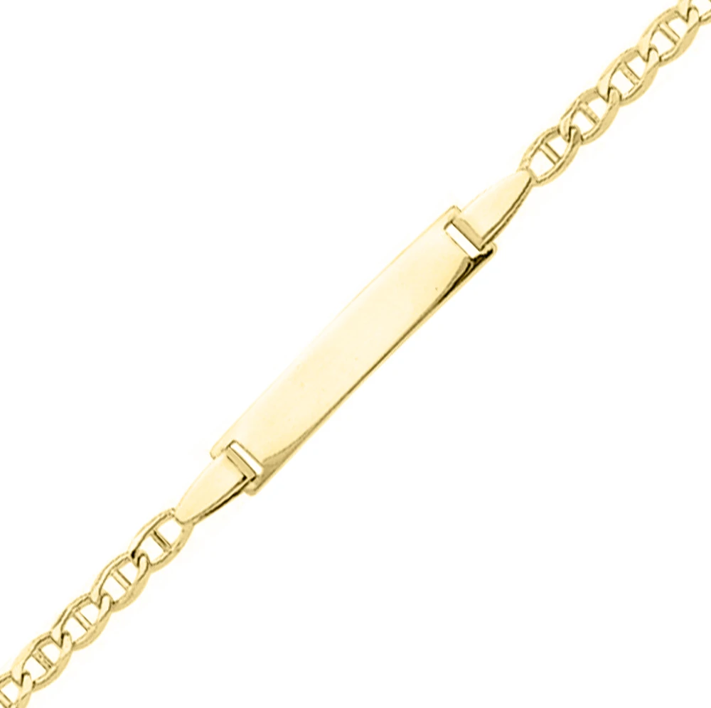 Cette superbe gourmette en maille marine plate fera bien des envieux ! Classique mais non dénuée d’élégance, elle affiche autant un côté sport qu’un style plus habillé, ce qui lui permet de s’accorder avec toutes les tenues et de s’adapter à toutes les occasions. Elle se personnalise aussi par un prénom à graver sur la plaque prévue à cet effet. Dimensions de la plaque: 2,4 x 0,4cm. La gourmette mesure 14cm avec un anneau intermédaire à 12cm. Elle est présentée dans un ravissant petit écrin blanc avec son certificat d’authenticité. Vous pouvez faire graver le prénom de l’enfant au recto et la date de votre choix au verso.