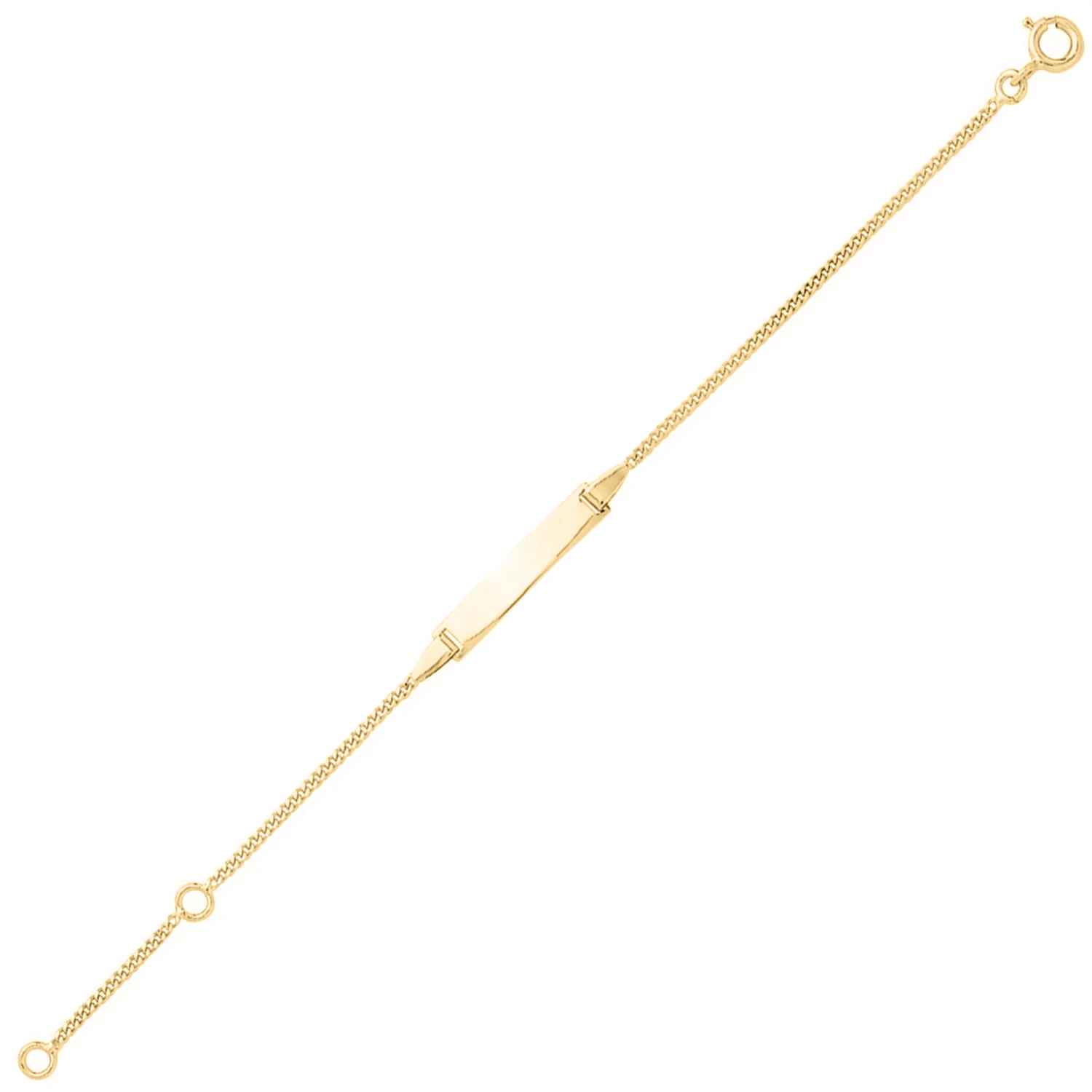 Cette gourmette en maille gourmette est composée d’une jolie plaque rectangulaire en or jaune 9ct. C’est aujourd’hui un plaisir de la mettre à ses poignets avec de si jolis entraves ! Pour donner la touche finale à ce ravissant bijou, il suffira de faire graver le prénom de l’enfant à qui il se destine, dans l’or fin de la plaque centrale. Dimensions de la plaque: 2cm x 0,4cm. La gourmette mesure 14cm avec un anneau intermédaire à 12cm. Elle est présentée dans un ravissant petit écrin blanc avec son certificat d’authenticité. Vous pouvez faire graver le prénom de l’enfant au recto et la date de votre choix au verso.