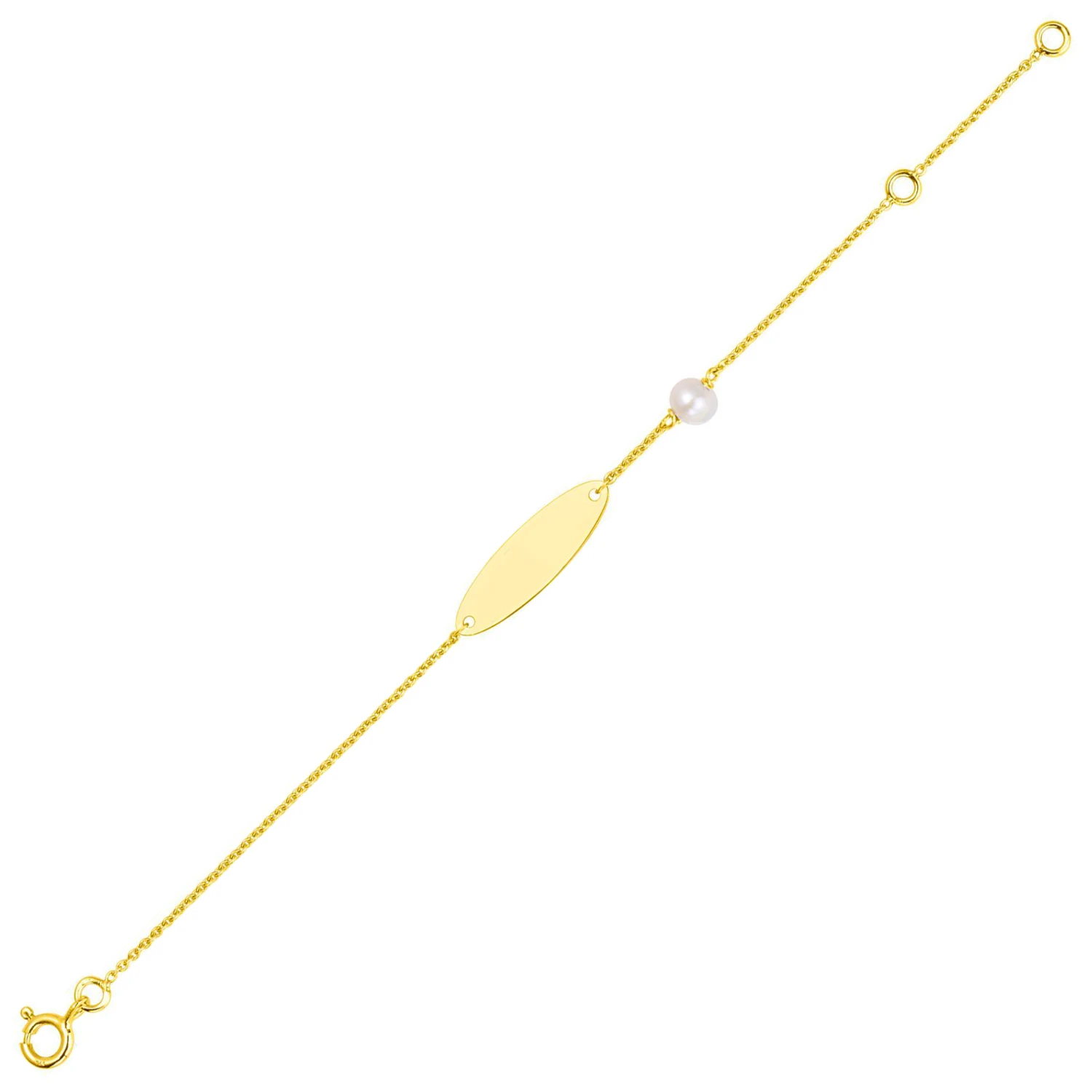 Découvrez cette magnifique gourmette bébé en or jaune 18 carats. Avec sa petite perle en nacre et sa jolie plaque arrondie elle sera le cadeau idéal pour une petite fille. Ce bijou pourra être personnalisé avec le prénom de votre enfant ainsi qu’une date pour ce souvenir d’un moment inoubliable. Dimensions de la plaque: 1,9cm x 0,7cm. La gourmette mesure 14cm et possède un anneau intermédiaire à 12,5cm. Elle est présentée dans un ravissant petit écrin blanc avec son certificat d’authenticité. Vous pouvez faire graver le prénom de l’enfant au recto et la date de votre choix au verso.
