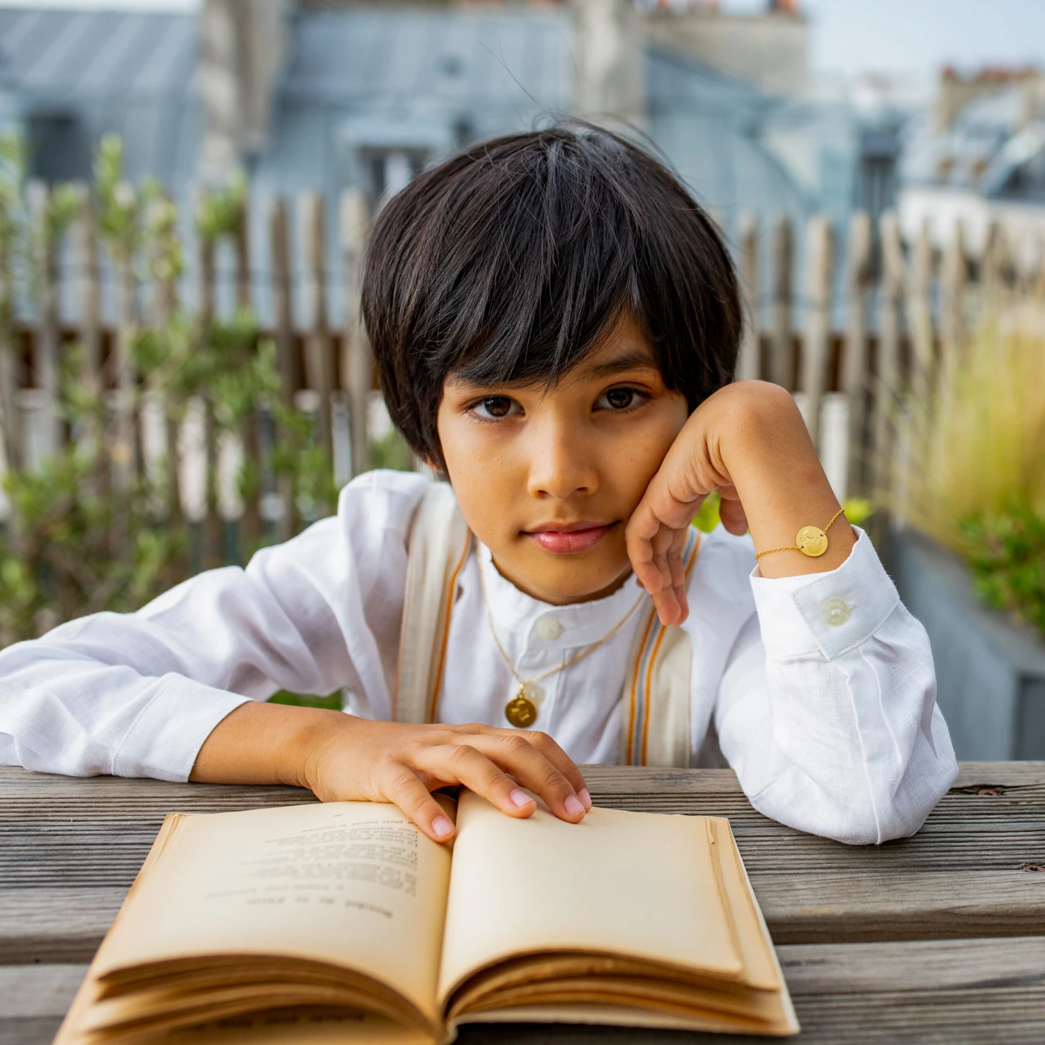 Cette superbe création du Petit Prince de Saint Exupéry qui protège la planète porte un message fort dans une période clef où nous devons tous comprendre qu’il faut prendre soin de notre Terre. Cette gourmette bébé en or jaune, à offrir pour une naissance, un anniversaire ou un baptême est une exclusivité de la Maison de la Médaille. Diamètre de la médaille : 14mm. La gourmette, fabriquée en France, mesure 14cm et possède un anneau intermédiaire à 12,5cm. Notre artisan peut personnaliser cette gourmette en gravant un prénom et une date . PremierCadeau s’engage pour la protection de la planète. Cette gourmette en or recyclé, accompagnée de son certificat d’authenticité, est présentée dans un bel écrin et un joli sac respectueux de l’environnement.
