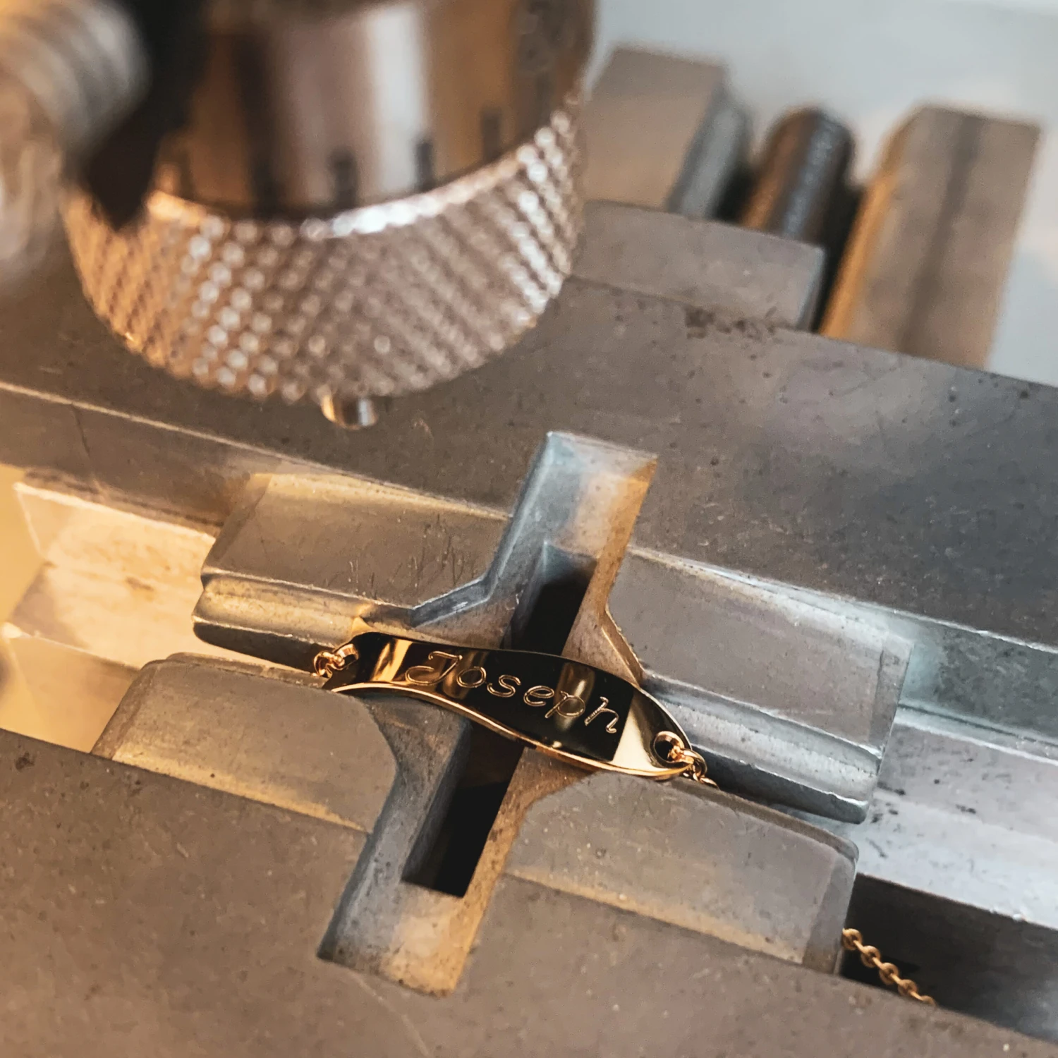 Un adorable poisson s’est laissé prendre dans le bracelet de cette jolie gourmette bébé en or jaune 18 carats. Au coeur de cette gourmette bapteme en mailles forçat ronde, il se transforme en plaque identitaire pour le moins originale afin de recevoir, gravé, un prénom d’enfant. Cette gourmette bébé s’offrira à l’occasion des premiers grands évènements de la vie, la naissance ou le baptême, moments uniques à marquer d’une attention qui l’est tout autant. Dimension du poisson : 2×0,6cm. La gourmette mesure 14cm et possède un anneau intermédiaire à 12,5cm. Elle est présentée dans un ravissant petit écrin blanc avec son certificat d’authenticité. Vous pouvez faire graver le prénom de l’enfant au recto et la date de votre choix au verso.