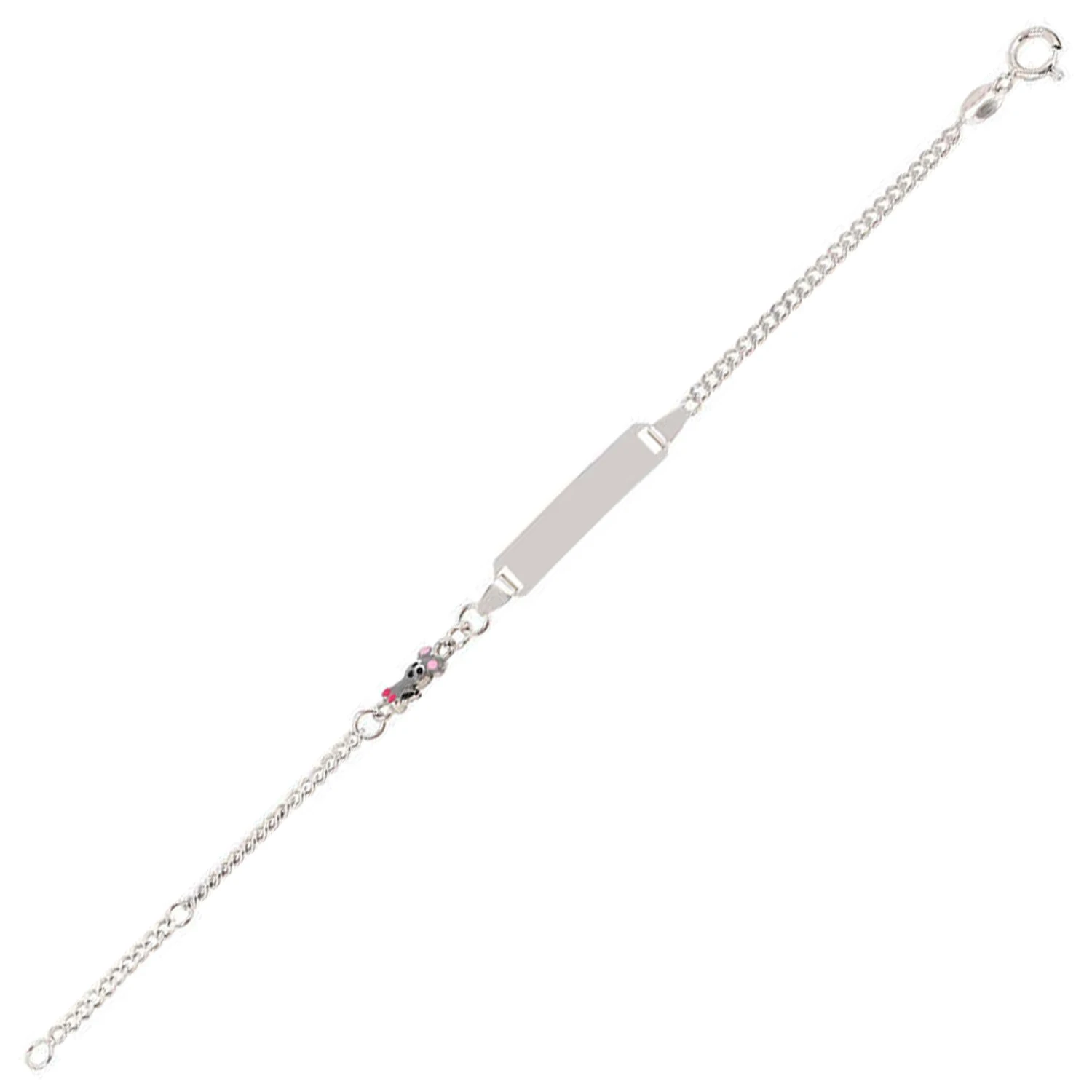 Les petites souris, c’est bien connu, aiment se faufiler partout et ces petits rongeurs prouvent une fois de plus qu’ils sont sont souvent là où on ne les attend pas. Après avoir délaissé les oreillers pour déposer quelque petit cadeau, voici que cette ravissante petite souris s’installe à demeure sur le bracelet de cette jolie gourmette en argent massif. Ce bijou sera une délicate attention pour une naissance ou un baptême . Dimensions de la plaque: 2,2cm x 0,5cm. La gourmette mesure 14cm et possède un anneau intermédiaire à 12,5cm. Elle est présentée dans un ravissant petit écrin blanc avec son certificat d’authenticité. Vous pouvez faire graver le prénom de l’enfant au recto et la date de votre choix au verso.