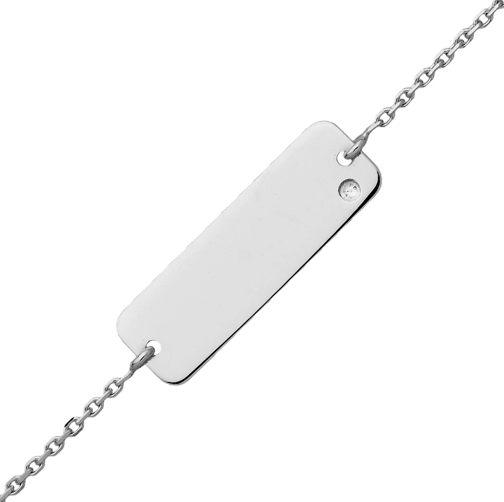 Gourmette Enfant Plaque – Diamant & Or Blanc 18ct