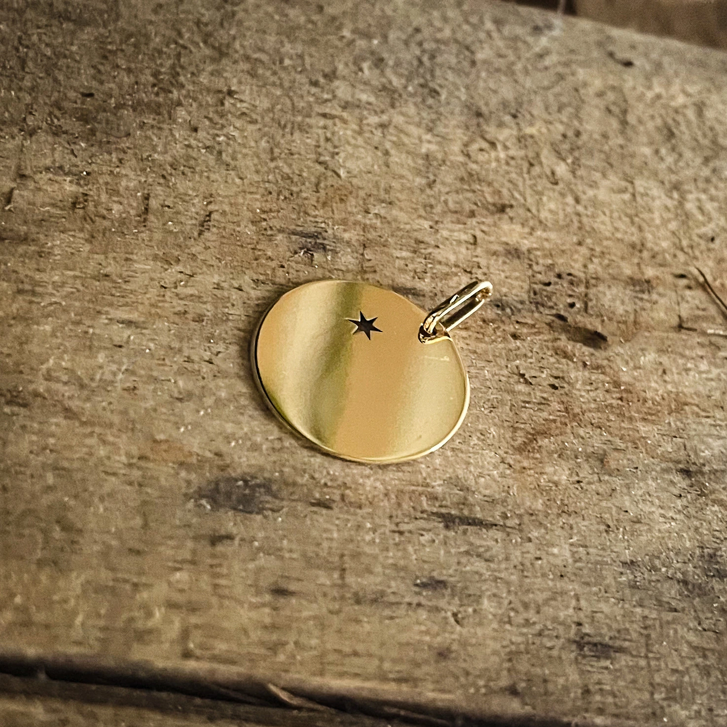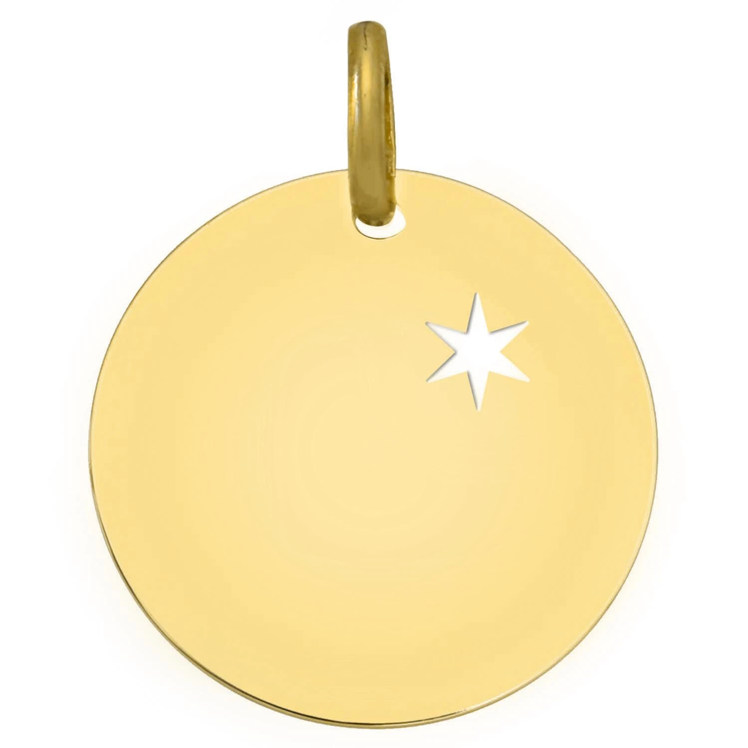 Dans le coin de cette médaille ronde en or jaune 18 carats brille une étoile à 6 branches, un petit astre qui guidera et veillera, telle « une bonne étoile » sur l’enfant qui portera ce ravissant bijou. Outre l’élégance de cette médaille, c’est sa portée symbolique qui en fera un beau cadeau de baptême . Cette médaille est brillante au recto et brossée au verso. Modèle déposé . Notre artisan peut personnaliser cette médaille de bapteme au verso en gravant un prénom et une date . PremierCadeau s’engage pour la protection de la planète. Cette médaille en or recyclé, accompagnée de son certificat d’authenticité, est présentée dans un bel écrin et un joli sac respectueux de l’environnement.
