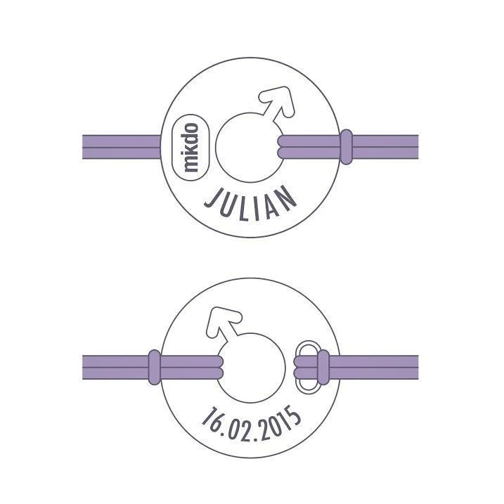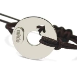 1 euro sera reversé à l’association Asmae Soeur Emmanuelle pour l’enfance défavorisée si vous offrez ce bijou ! «Disco Boy» est un bracelet bébé »disque d’argent » (diamètre 15,5mm) qui compte de nombreux admirateurs. Ce bracelet bébé personnalisable avec prénom et date est constitué du symbole «garçon», videogramme composé d’un cercle et d’une flèche, représentant respectivement le bouclier et la lance de Mars. Ce bracelet baptême s’adapte au poignet qui grandit grâce à un cordon à choisir parmi 14 couleurs, réglable avec une pastille coulissante. Choisissez la couleur du cordon parmi 14 couleurs. Tous les cordons peuvent être réglés la longueur désirée (bébé à l’adulte). Chaque bijou est fabriqué en France et présenté dans un ravissant petit écrin grifé Mikado avec une chamoisine spéciale nettoyage bijoux. Un très joli sac cadeau sera associé à l’ensemble.