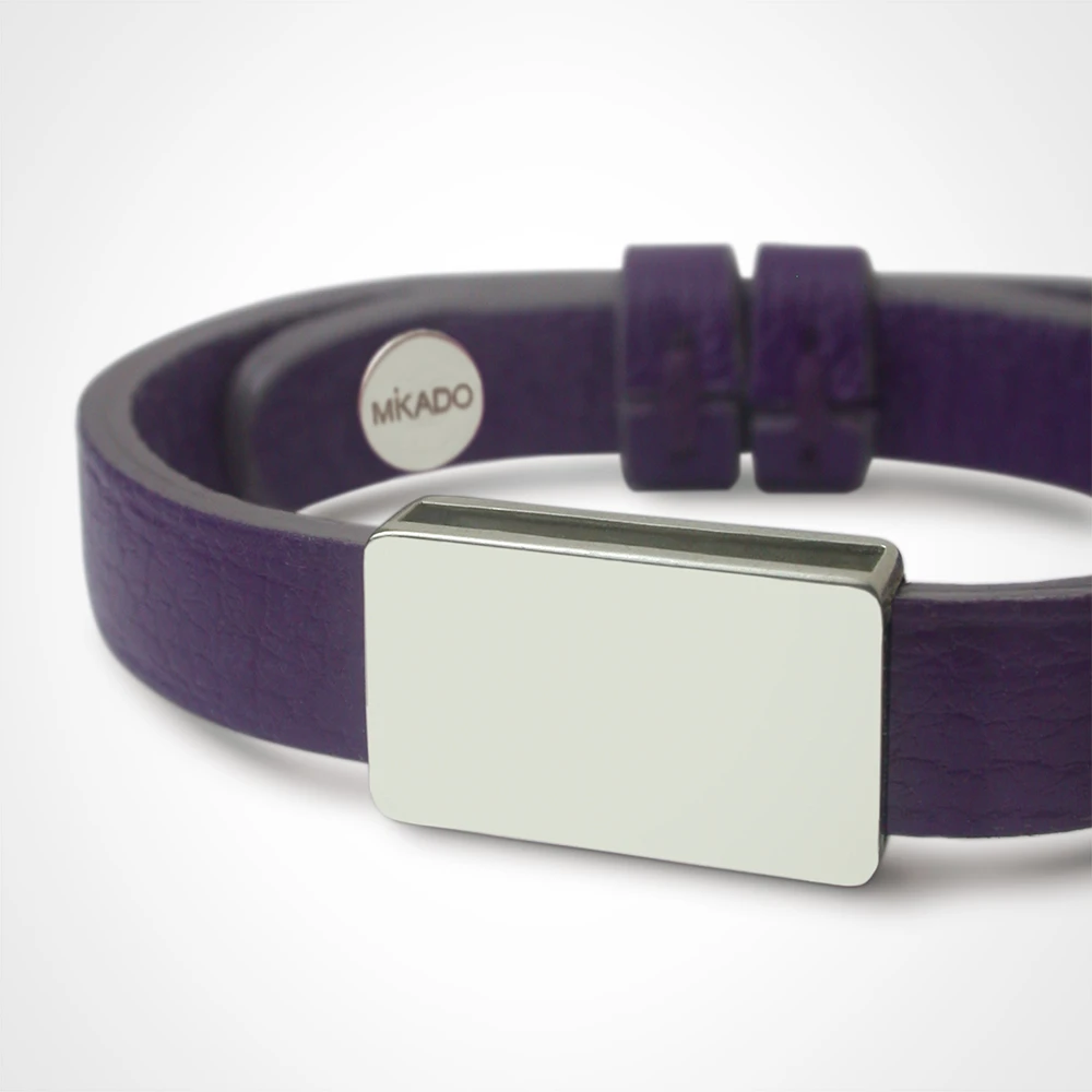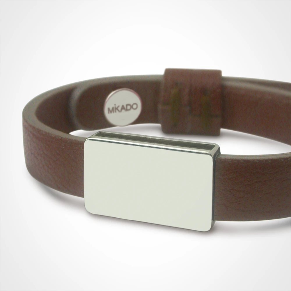 1 euro sera reversé à l’association Asmae Soeur Emmanuelle pour l’enfance défavorisée si vous offrez ce bijou ! HIP-HOP, c’est le bracelet « Transformer » de Mikado. Avec sont bracelet maroquinerie en cuir réglable, sa plaque identité et son fermoir boule en argent, il est entièrement démontable et évolutif, Yo! Envie de changer ? Les pièces en métal sont repositionnables sur un autre cuir au choix. Taille : de 13 à 16cm. Chaque bijou est fabriqué en France et présenté dans un ravissant petit écrin grifé Mikado avec une chamoisine spéciale nettoyage bijoux. Un très joli sac cadeau sera associé à l’ensemble.