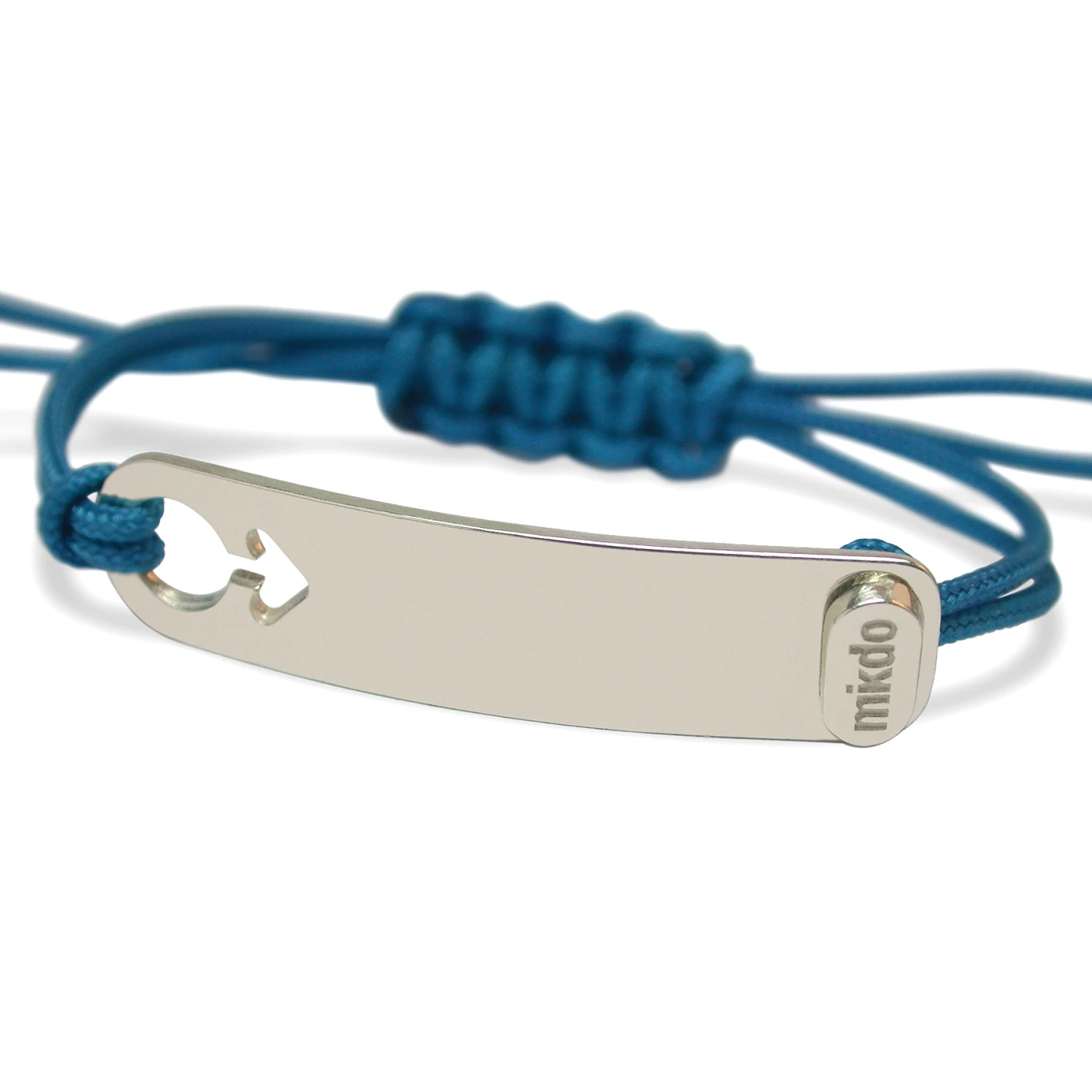 1 euro sera reversé à l’association Asmae Soeur Emmanuelle pour l’enfance défavorisée si vous offrez ce bijou ! Sur ce bracelet bébé en argent massif poli est représenté le traditionnel symbole masculin (plaque de 30x7mm) , cercle surmontant une lance , allégorie d u dieu Mars . Le bracelet bébé »I am a Boy » est une élégante gourmette composée d’une plaque personnalisable retenue par un cordon waterproof, réglable, à choisir parmi 14 couleurs. Moderne et élégant ce bracelet bapteme est d’une grande originalité. Tous les cordons peuvent être réglés à la longueur désirée (bébé à l’adulte). Pour information le cordon en photo principale est le océan. Vous pouvez personnaliser ce bijou avec une gravure parmi 5 polices. Chaque bijou est fabriqué en France et présenté dans un ravissant petit écrin grifé Mikado avec une chamoisine spéciale nettoyage bijoux. Un très joli sac cadeau sera associé à l’ensemble.