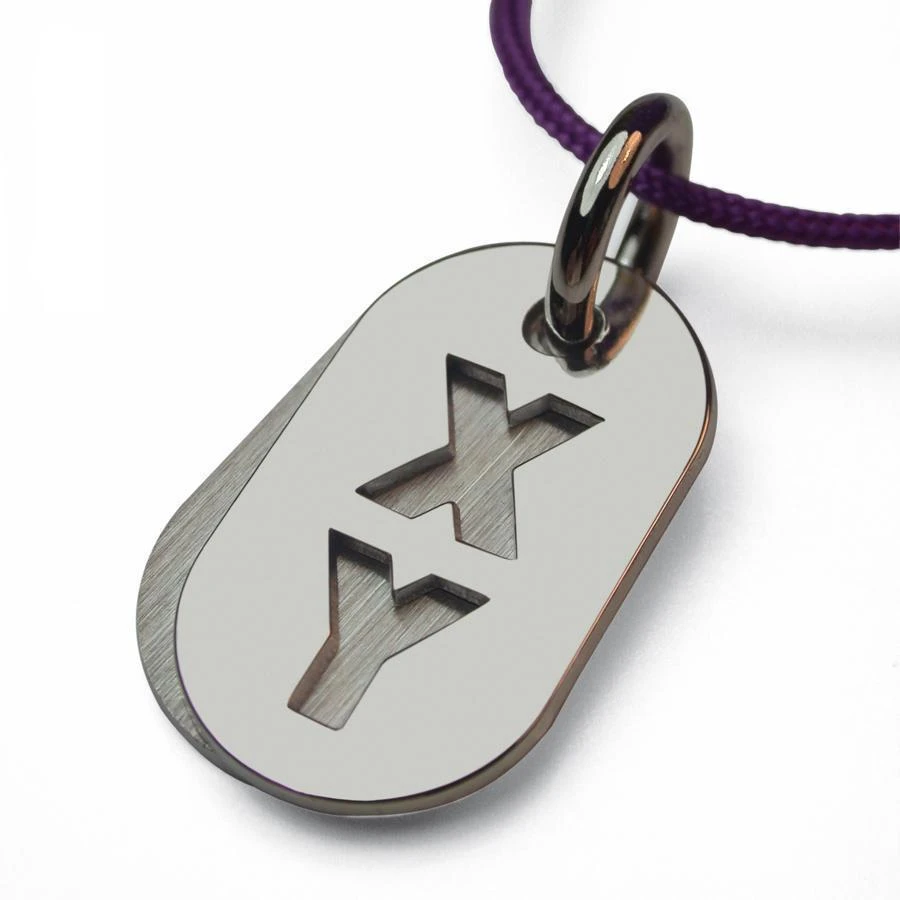 1 euro sera reversé à l’association Asmae Soeur Emmanuelle pour l’enfance défavorisée si vous offrez ce bijou ! XY ? Pas de doute ce pendentif enfant est destiné à une petit garçon ! Comme un clin d’oeil aux mystères de la génétique, ce pendentif de baptême mêle beauté et humour. En argent massif brossé, ce pendentif enfant est constitué de 2 plaques amovibles et porte, de manière ajourée sur la première, le signe chromosomique attribué au sexe masculin. Un cadeau d’une grande originalité ! Choisissez la couleur du cordon parmi 14 couleurs. Tous les cordons ont une pastille en argent coulissante qui permet de régler la longueur désirée (bébé à l’adulte). Vous pouvez faire personnaliser ce bijou par un Artisan Graveur, 2 polices sont disponibles. Chaque bijou est fabriqué en France et présenté dans un ravissant petit écrin grifé Mikado avec une chamoisine spéciale nettoyage bijoux. Un très joli sac cadeau sera associé à l’ensemble.
