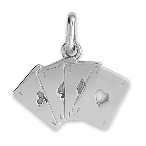 Pique, trèfle, cœur, carreau… voici un superbe carré d’as prêt à gagner la partie. Cet original pendentif en or blanc 9 carats devrait amener la chance à celui qui le portera et lui donner toutes les cartes pour réussir dans la vie. Ce pendentif, accompagné de son certificat d’authenticité, est présenté dans un bel écrin avec un joli sac.
