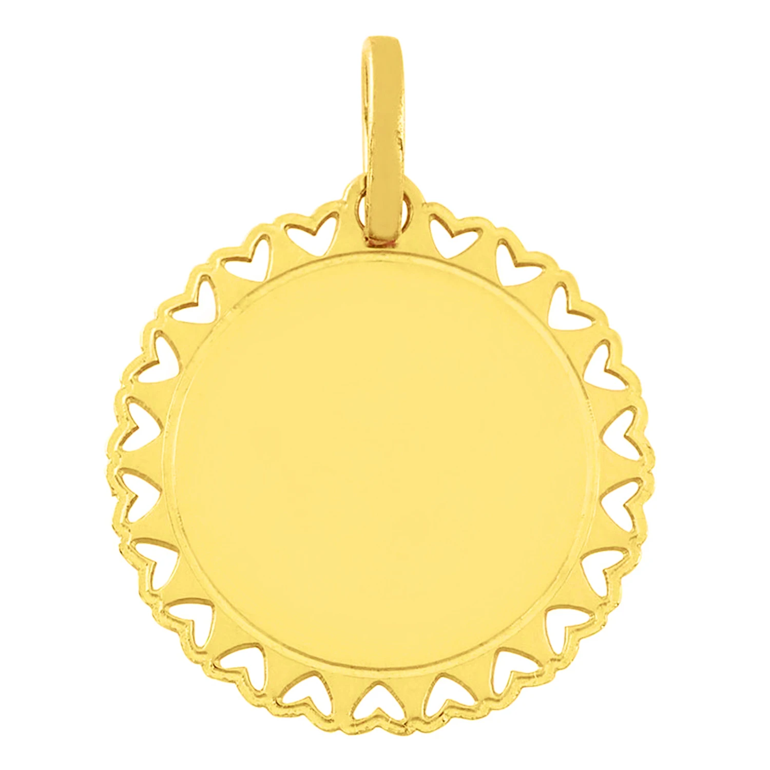 Réalisée en or 18 carats, cette jolie médaille brillante trouve sa beauté dans ses petits coeurs ajourés. Elle sera un merveilleux cadeau à offrir lors d’un baptême ou en toute autre occasion. Une jolie manière de déclarer son amour. Ce pendentif, accompagné de son certificat d’authenticité, est présenté dans un bel écrin avec un joli sac. Notre artisan peut personnaliser ce pendentif, à vous de choisir l’emplacement de la gravure.