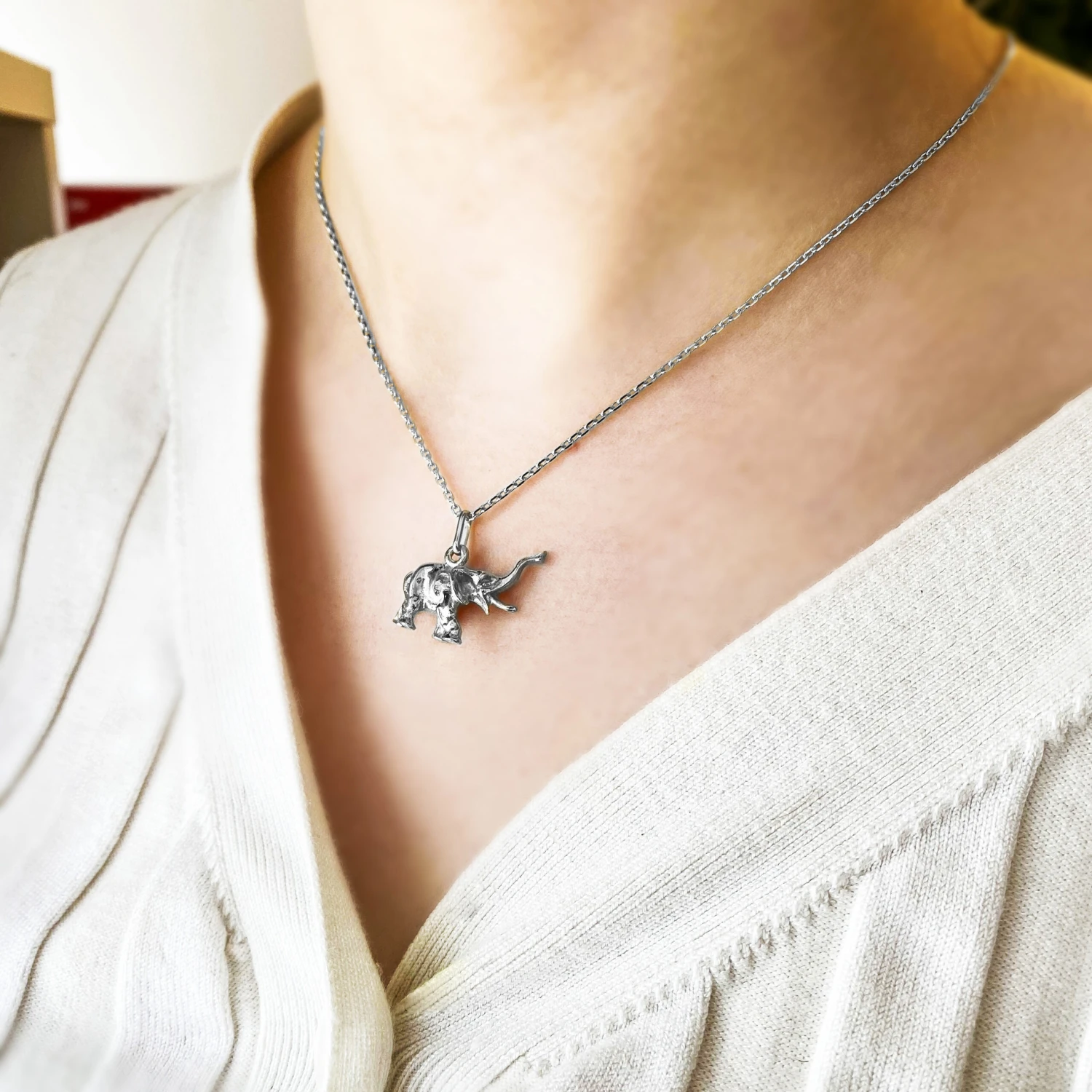Associé principalement à la mémoire, la sagesse, la longévité, la prospérité et la bienveillance, l’éléphant est un animal souvent pris, et avec succès, comme modèle en bijouterie, comme ici, sur ce beau pendentif enfant en or blanc 18 carats. Ce pendentif, accompagné de son certificat d’authenticité, est présenté dans un bel écrin avec un joli sac.