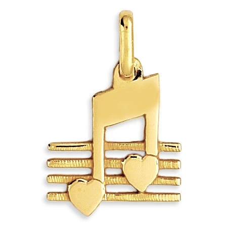 Pendentif Note De Musique Coeur – Or Jaune 9ct