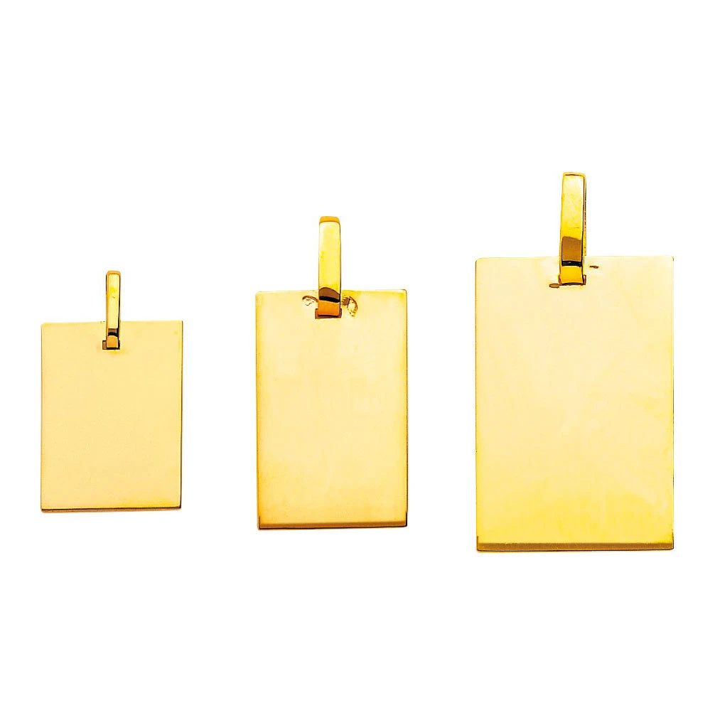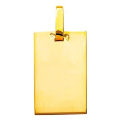 La forme classiquee et la simplicité de ce pendentif « plaque » en or jaune 18 carats seront appréciées par les adeptes de bijoux discrets. Offert à un enfant à l’occasion de son baptême ou également à un adulte, ce pendentif à graver d’un prénom n’aura aucun mal à traverser les années sans prendre une ride ! Dimensions : 19x14mm, 24x15mm et 30x20mm. Ce pendentif, accompagné de son certificat d’authenticité, est présenté dans un bel écrin avec un joli sac. Notre artisan peut personnaliser ce pendentif, à vous de choisir l’emplacement de la gravure.