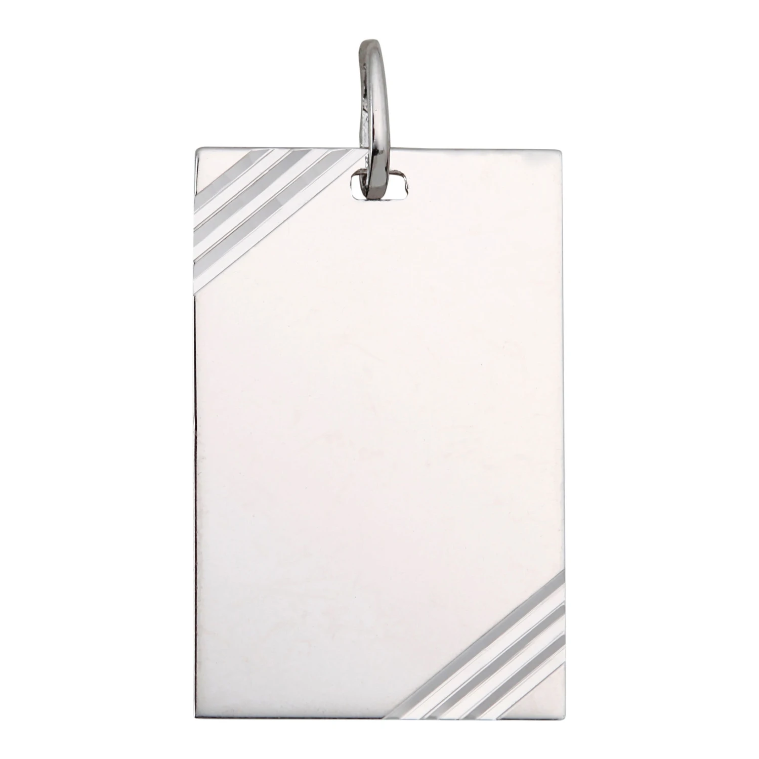 Pendentif Plaque Rectangle Striée – Argent Massif