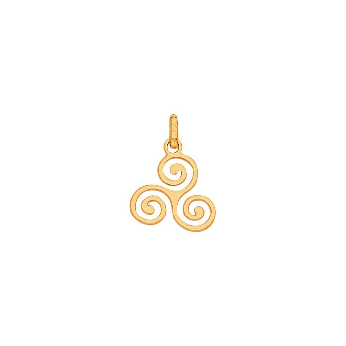 Ce pendentif triskel en or jaune 18 carats est un symbole celtique à trois branches représentant trois jambes humaines, ou trois spirales entrecroisées, tournant autour d’un axe central. Les jolies courbes de ce pendentif sont porteuses de dynamisme, d’enthousiasme, à la différence des pendentifs figés. Les branches d’un Triskell tournent toujours dans le sens inverse des aiguilles d’une montre, représentant le sens sacré, celui de la paix. Cette croix, accompagnée de son certificat d’authenticité, est présentée dans un bel écrin avec un joli sac.